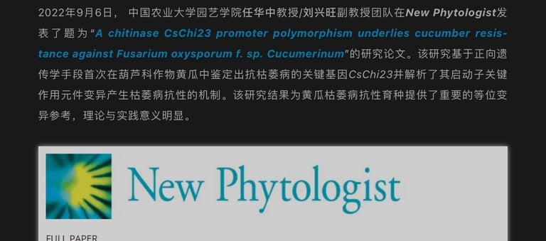Published groundbreaking paper: “A chitinase CsChi23 promoter polymorphism underlies cucumber resistance…” in New Phytologist, later highlighted in China’s academic space. The technology was patented, validating the science behind agroTT.