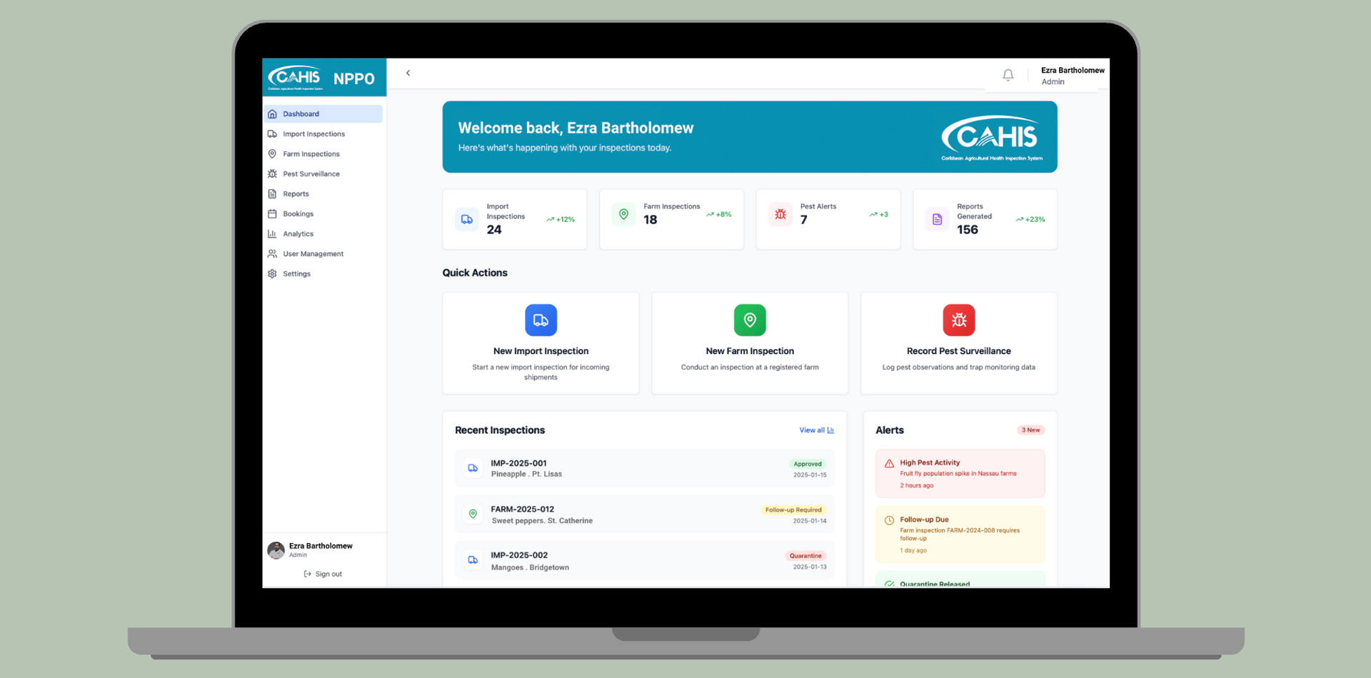 The Caribbean Agricultural Health Inspection System (CAHIS) is a digital platform designed by agroTT to support agricultural regulatory bodies and stakeholders in managing field inspections, health certifications, compliance checks, and data reporting — all in one place.